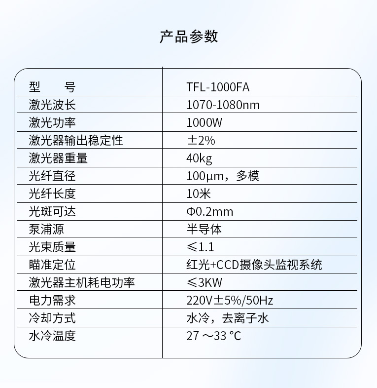 純凈水一般要求電阻率大于0.5MΩ.cm,使用一段時(shí)間后水電阻率會(huì)降低或水中有雜質(zhì)、污物、水變混濁等現(xiàn)象,將會(huì)使氙燈點(diǎn)不然或污染激光腔及玻璃管,使出光效率降低,此時(shí)應(yīng)立即更換純凈水(連續(xù)使用時(shí)每周更換一次系統(tǒng)中的去離子水)。