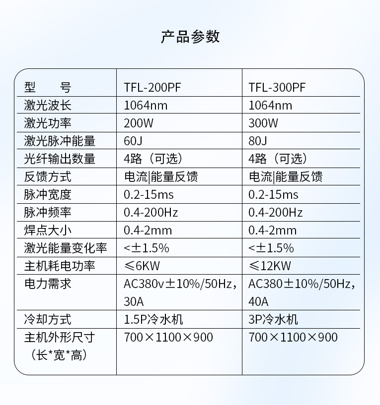 通發(fā)激光TFL-300PF光纖激光焊接機(jī),精密能量反饋控制模式,穩(wěn)定性<3%,經(jīng)過光纖優(yōu)化獲得卓越的光束質(zhì)量,適合1mm以下精密手機(jī)五金激光焊接、廚衛(wèi)家電五金不銹鋼精密激光焊接加工。